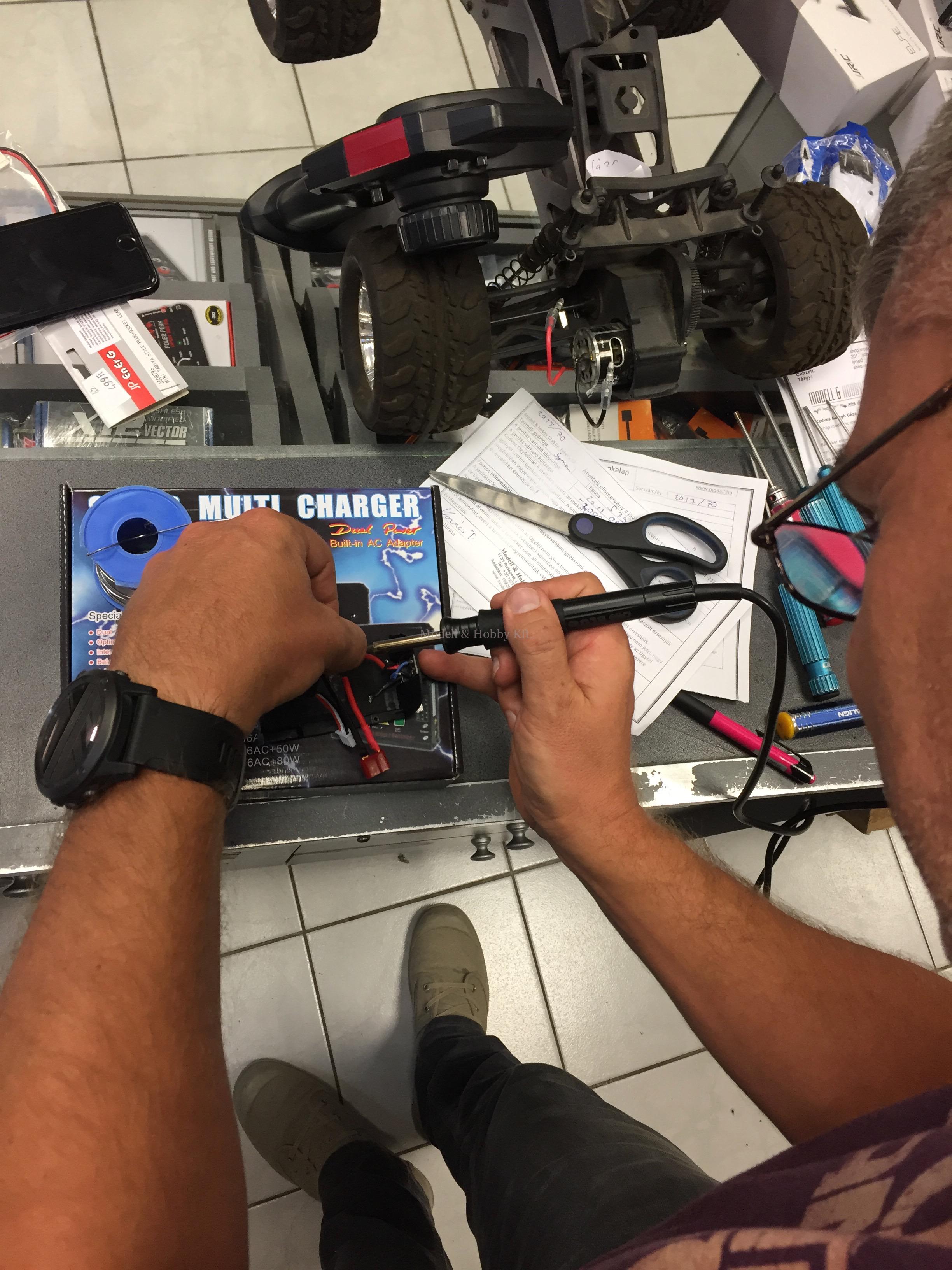 A drón boldog, a modellező kolléga pedig szintén, hiszen ezzel a megoldással a gyári töltő használata mellett, egyéb költség nélkül, a gyári akkupakk árának kevesebb, mint feléért, harmadáért és némi munkadíjért cserébe jobb megoldást kapott, mint a gyári akkumulátor pótlása lett volna.