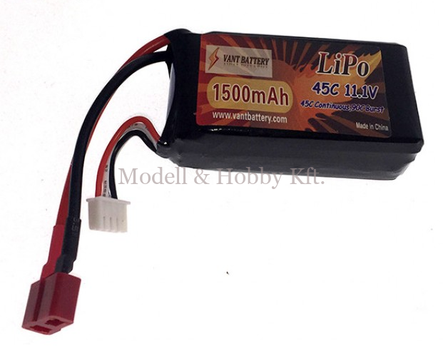 Erre az akkupakkra esett a választásunk! Ez a VANT akkupakk szintén 11.1 V, viszont a gyári 1200mAH kapacitásnál nagyobb, 1500 mAh kapacitású és a 45C terhelhetőségű a gyári 20C helyett. Vagyis minden szempontból jobb, mint a gyári akku volt.